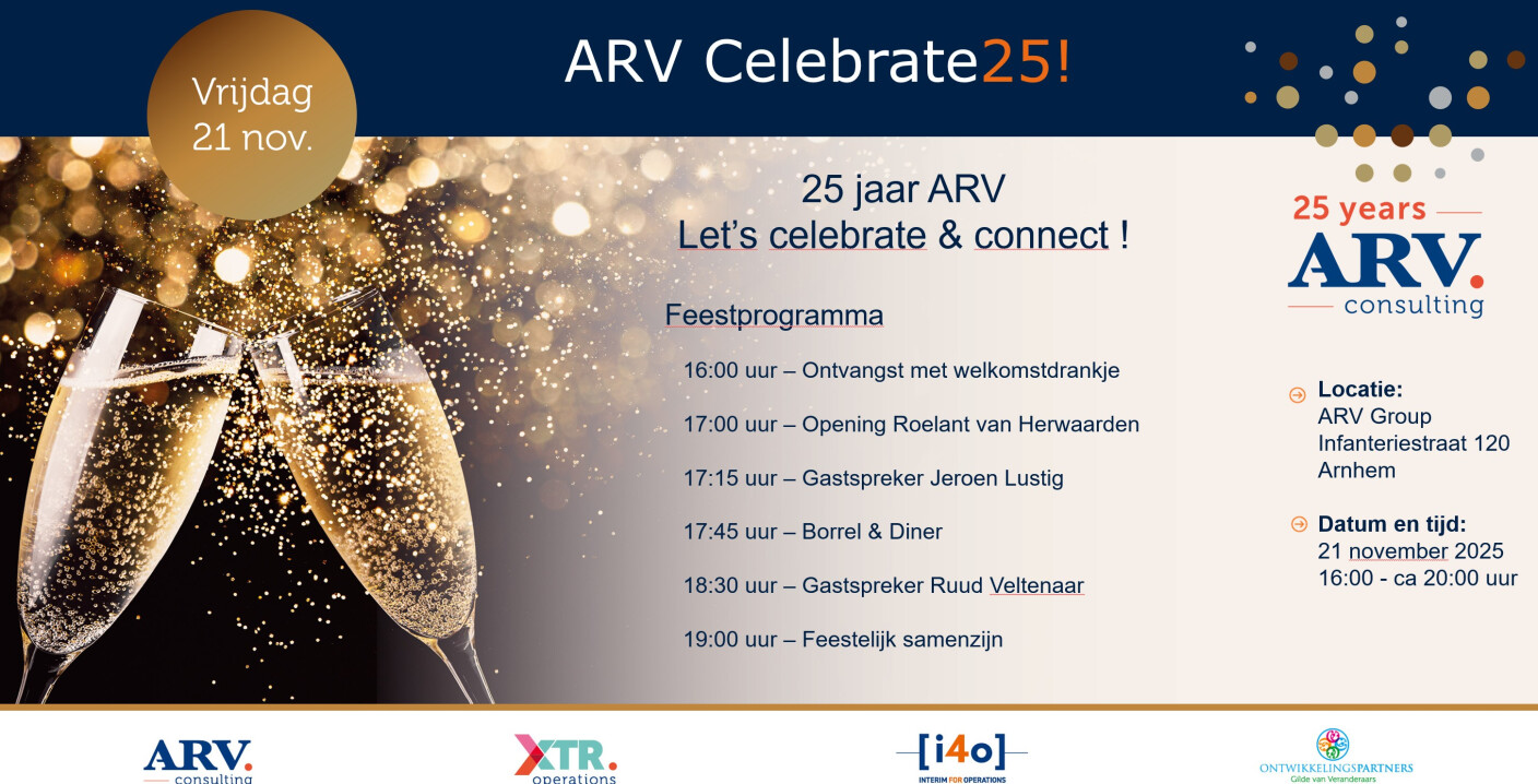 Met ARVCelebrate25! vieren we wat ons nú verbindt en wat ons morgen brengt: samenwerking, vernieuwing en duurzame verbindingen die het verschil maken. Het jubileum is daarmee niet alleen een feestelijke mijlpaal, maar ook een inspirerend moment om samen met onze klanten, partners en collega’s vooruit te kijken naar de toekomst. En dat willen we tijdens ARVCelebrate25! volop laten zien.